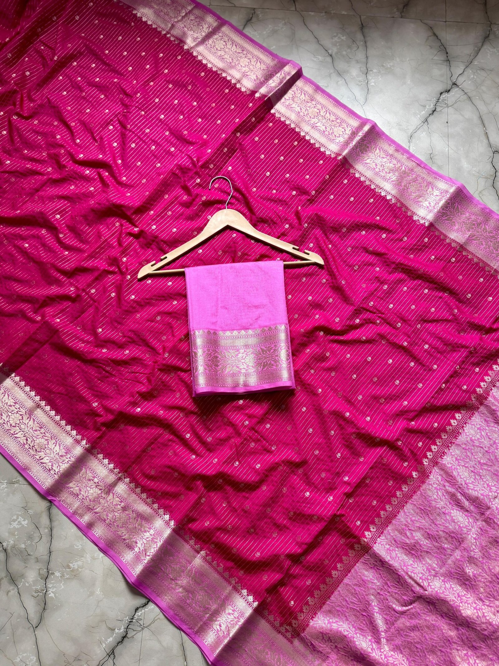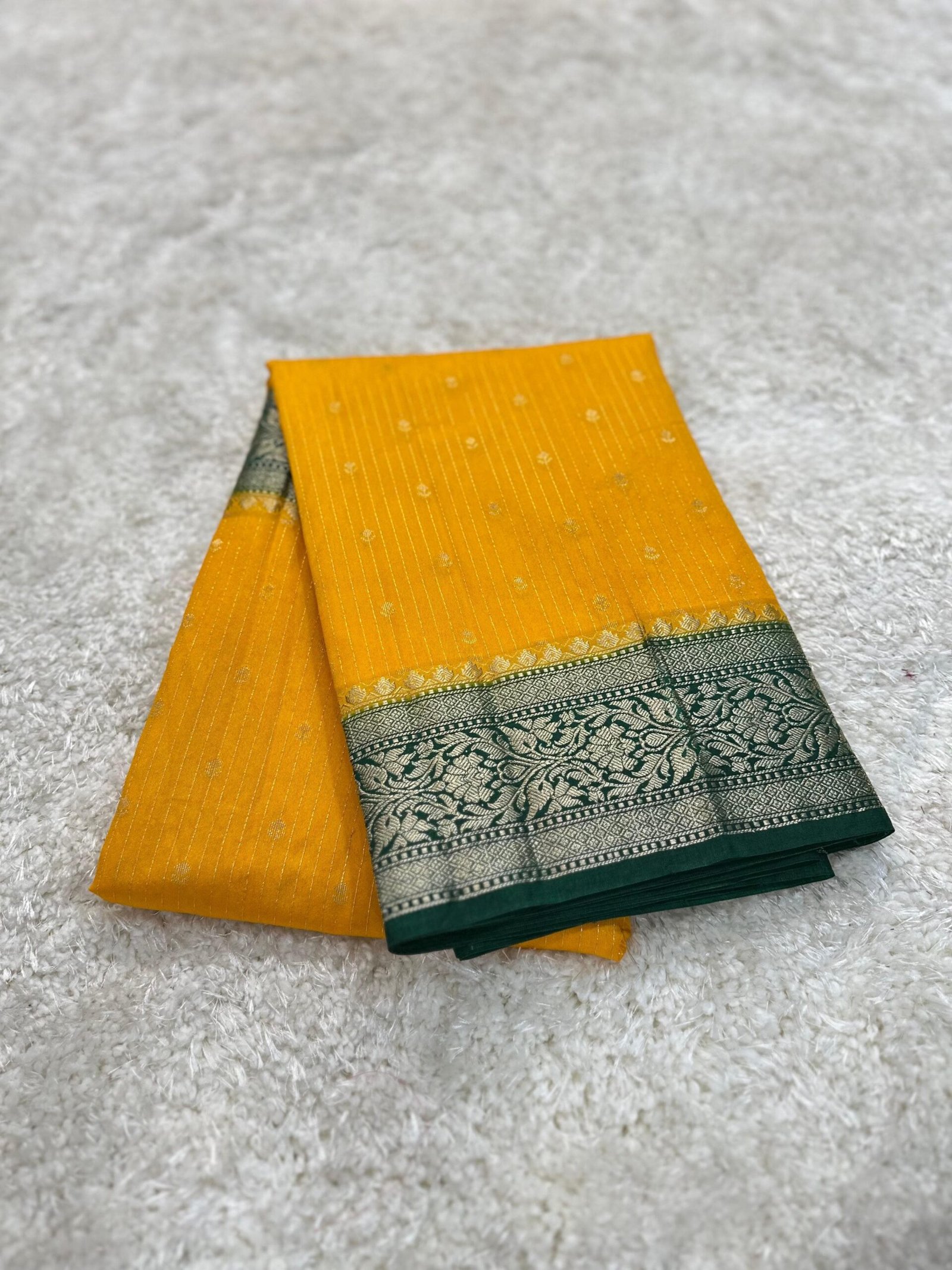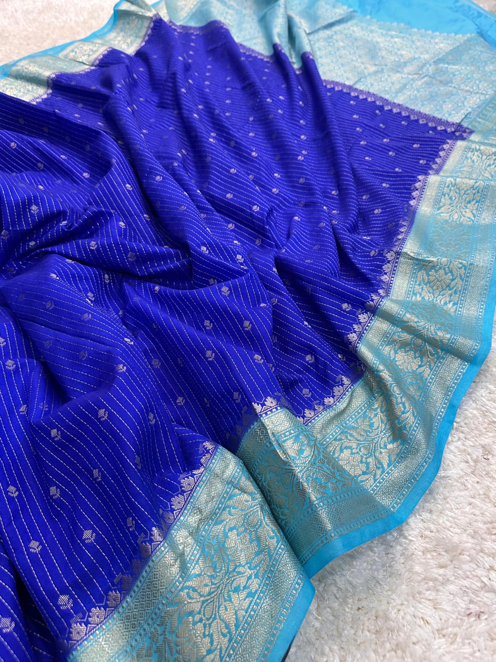 Banarasi semi chiniya silk dyble saree with all over stripes buti’s desing