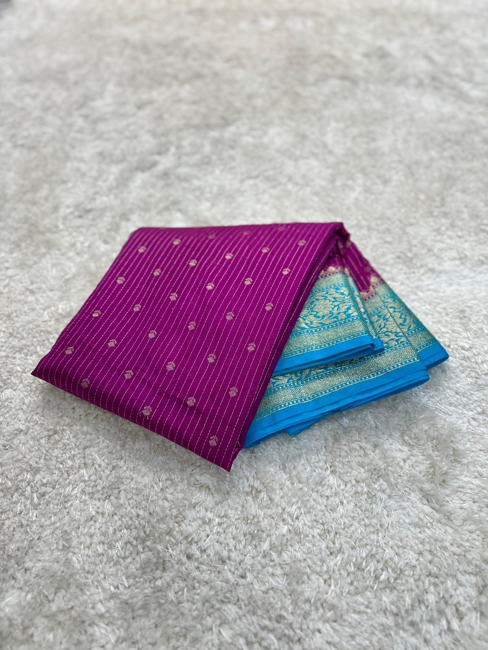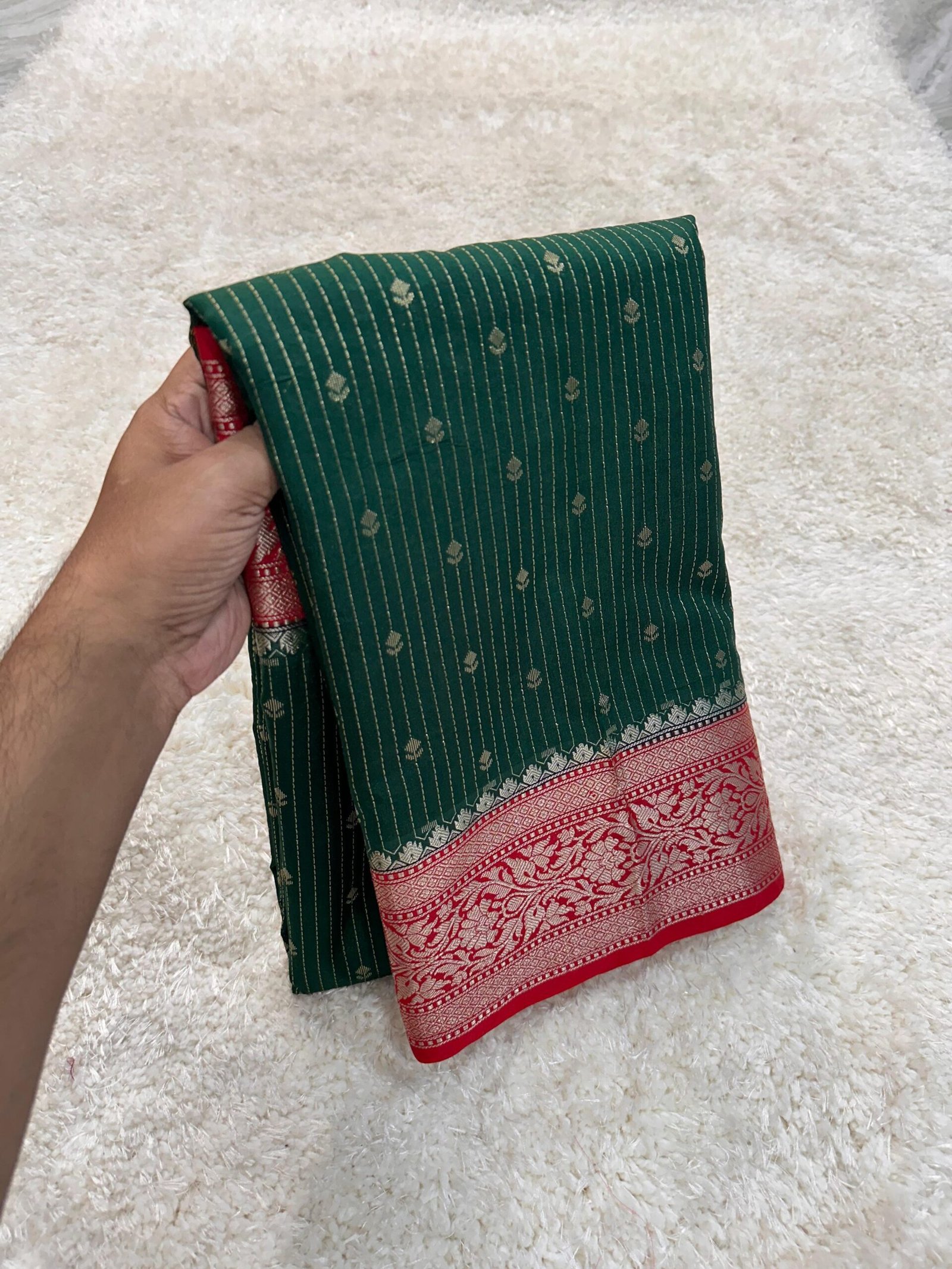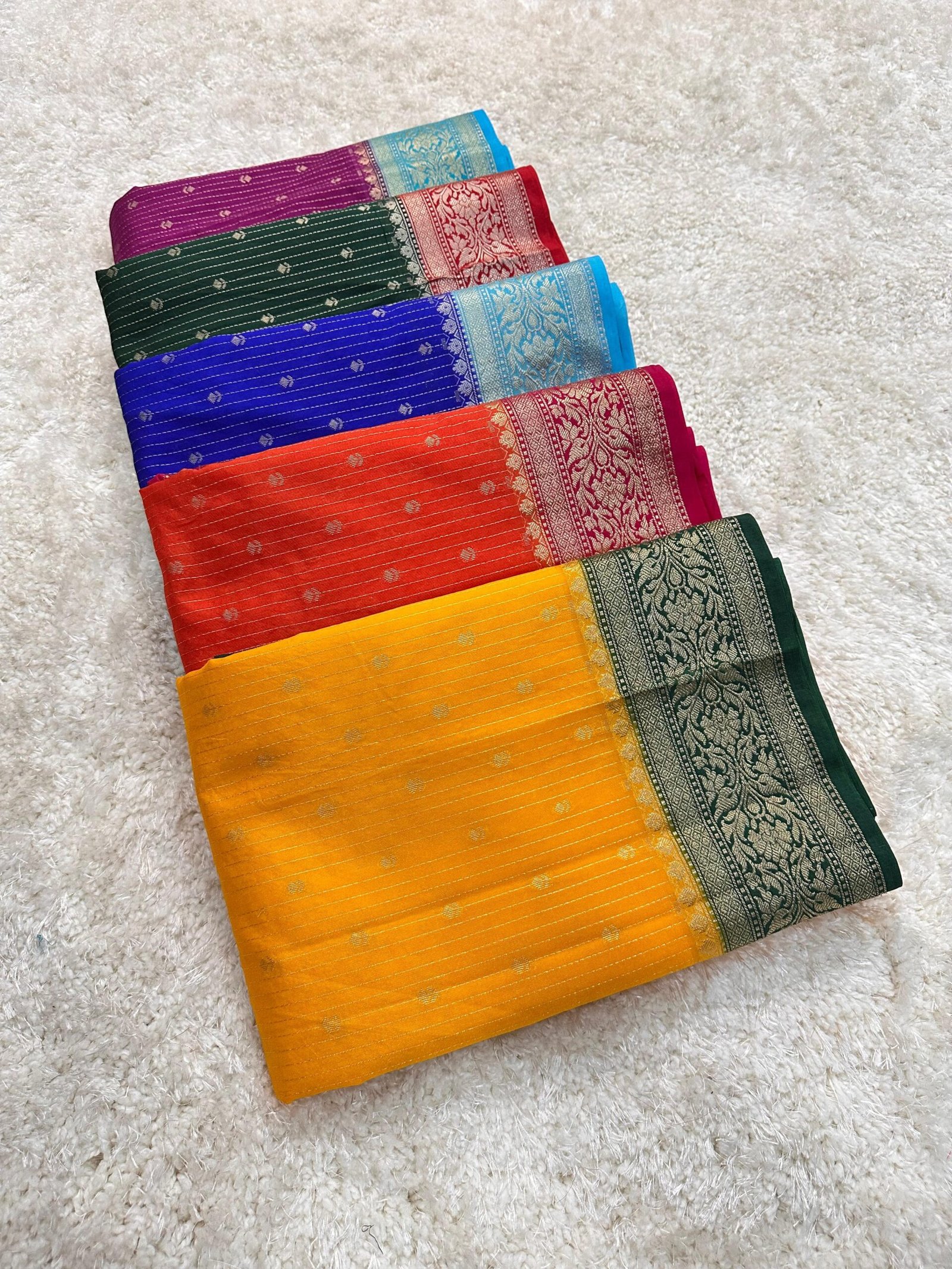 Banarasi semi chiniya silk dyble saree with all over stripes buti’s desing