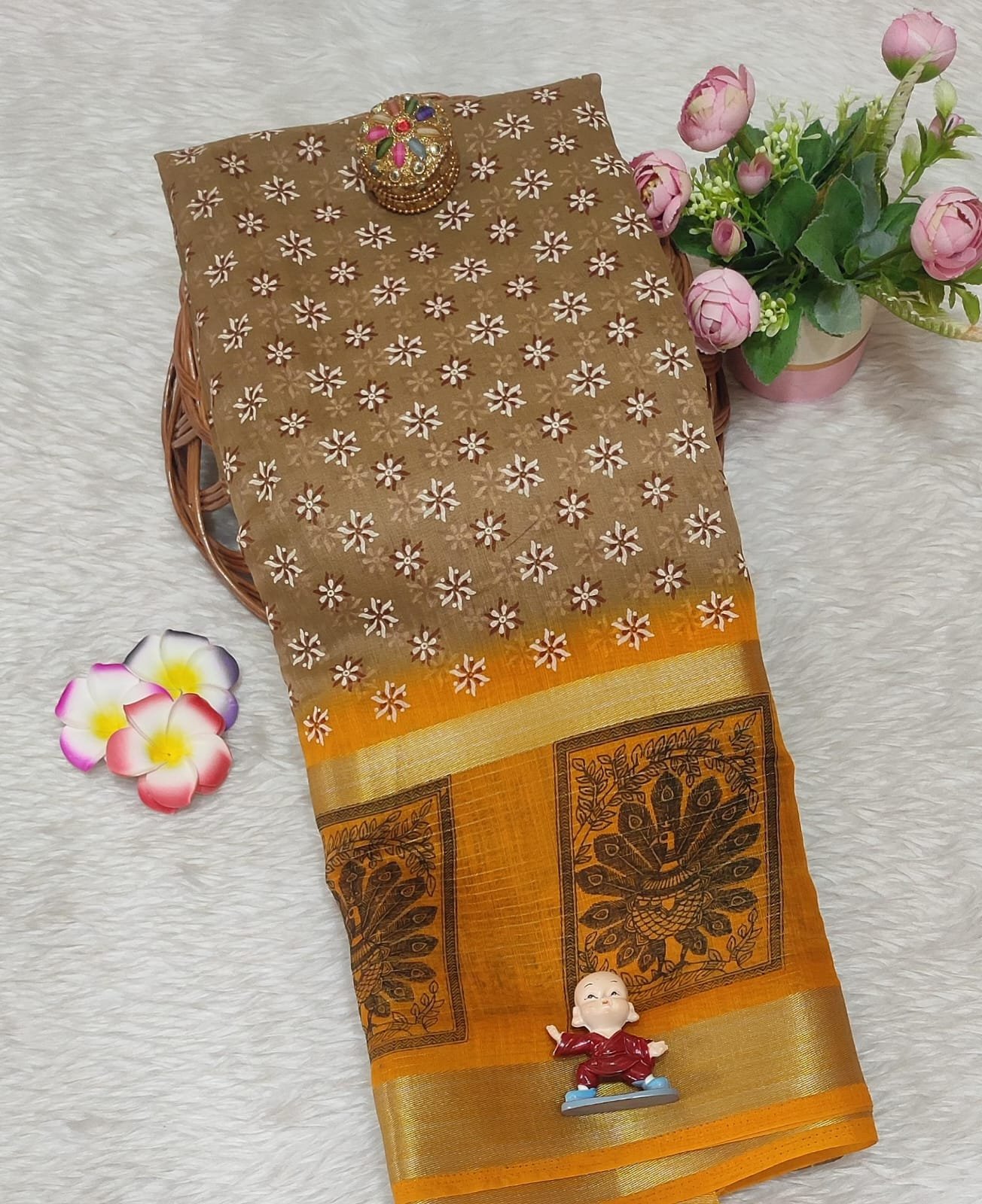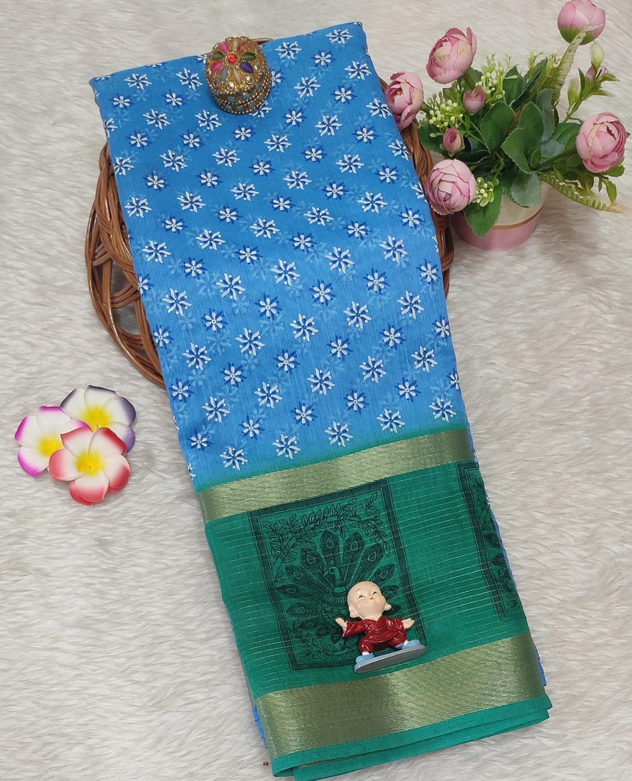 Chanderi fancy cotton saree with contrast blouse