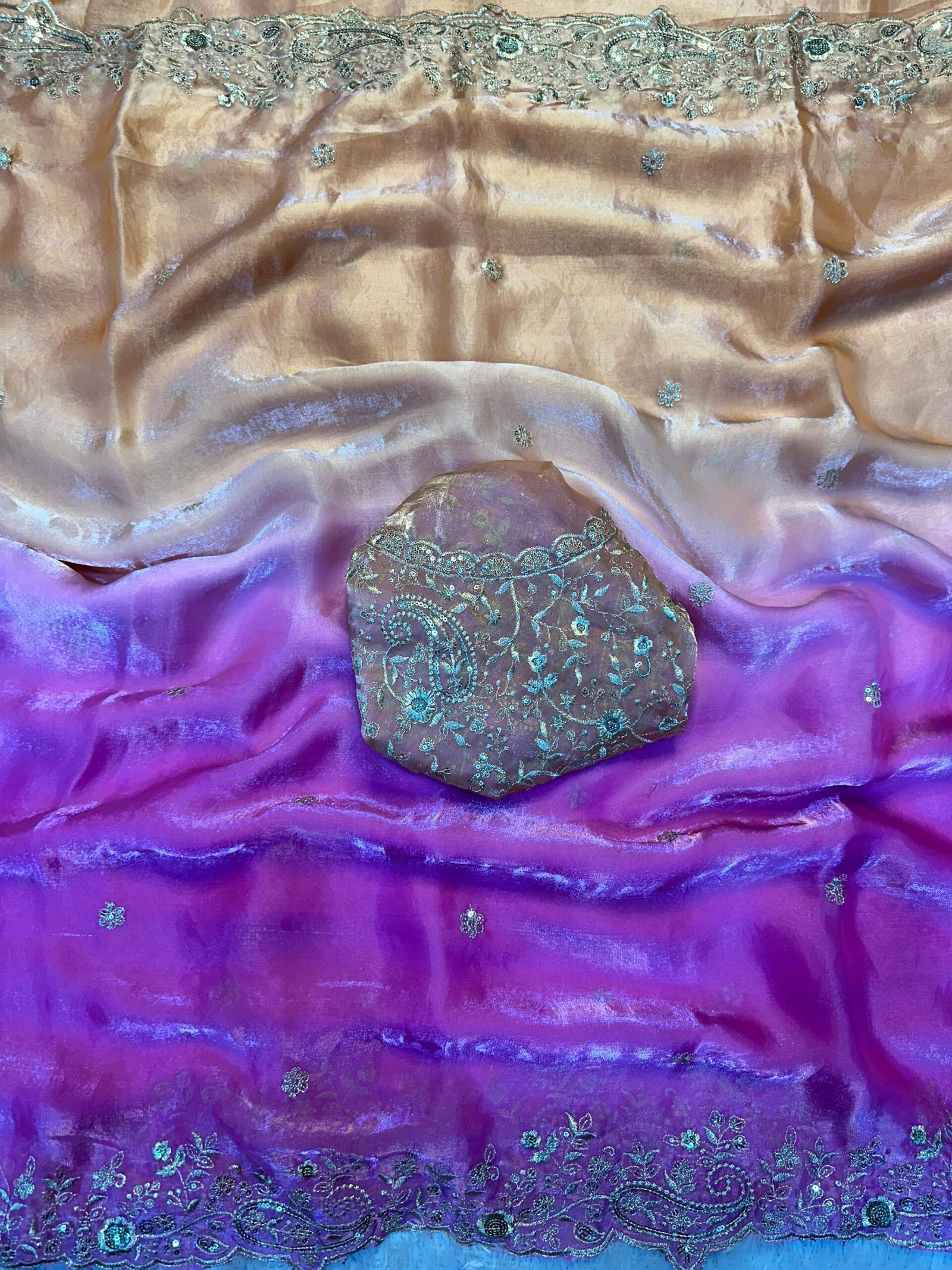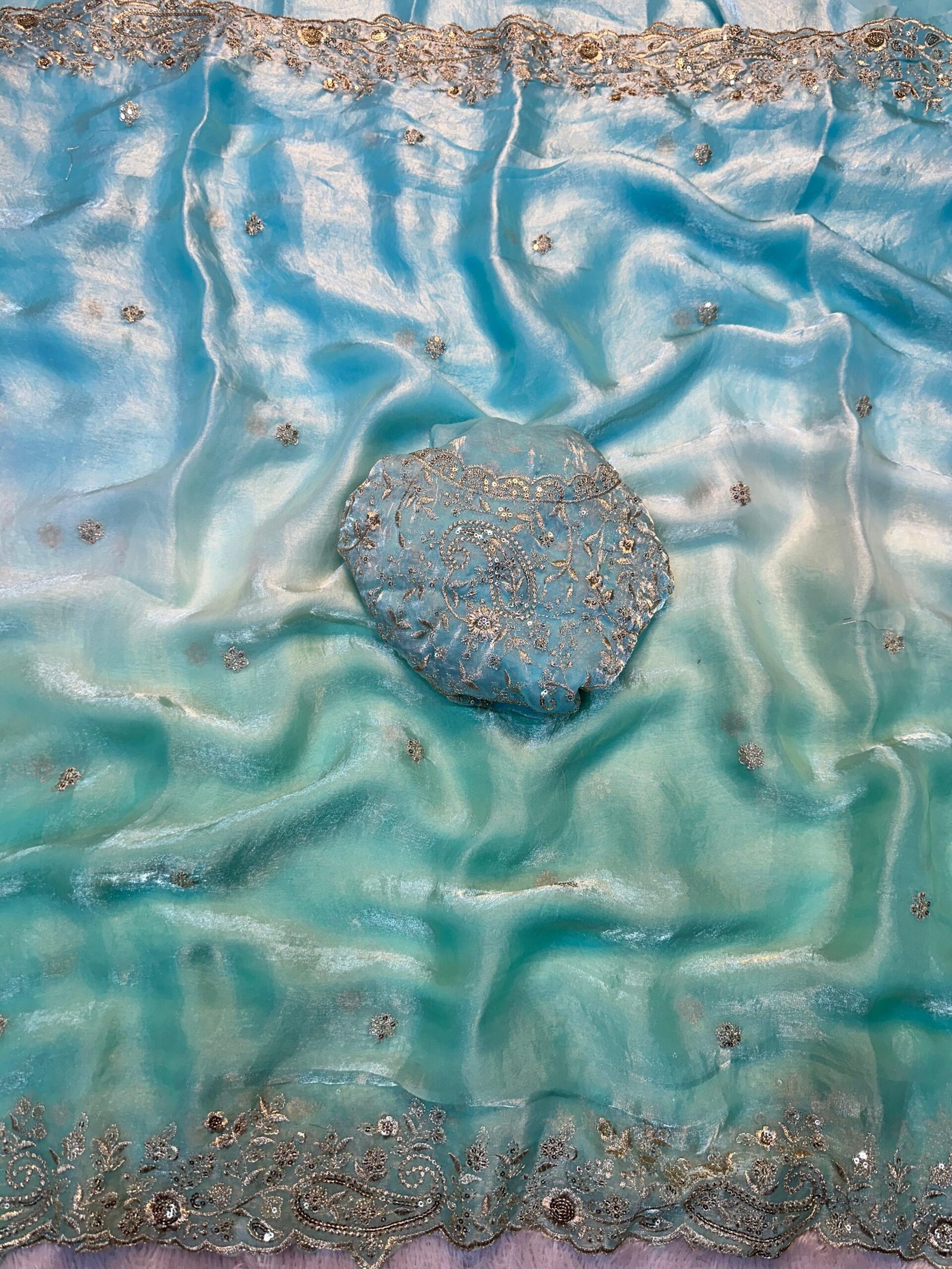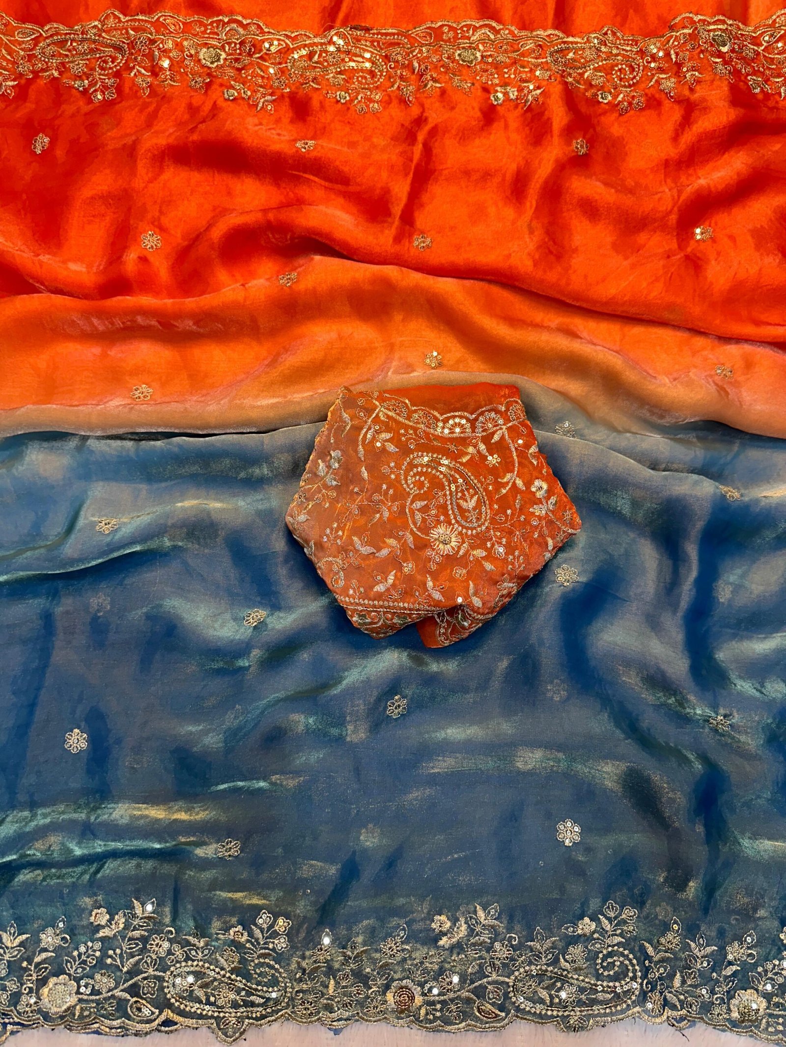 Very soft & elegant rich look fendy sartin pedding fabric with beautiful embroider 3mm sequence work heavy border with buttis in all over saree