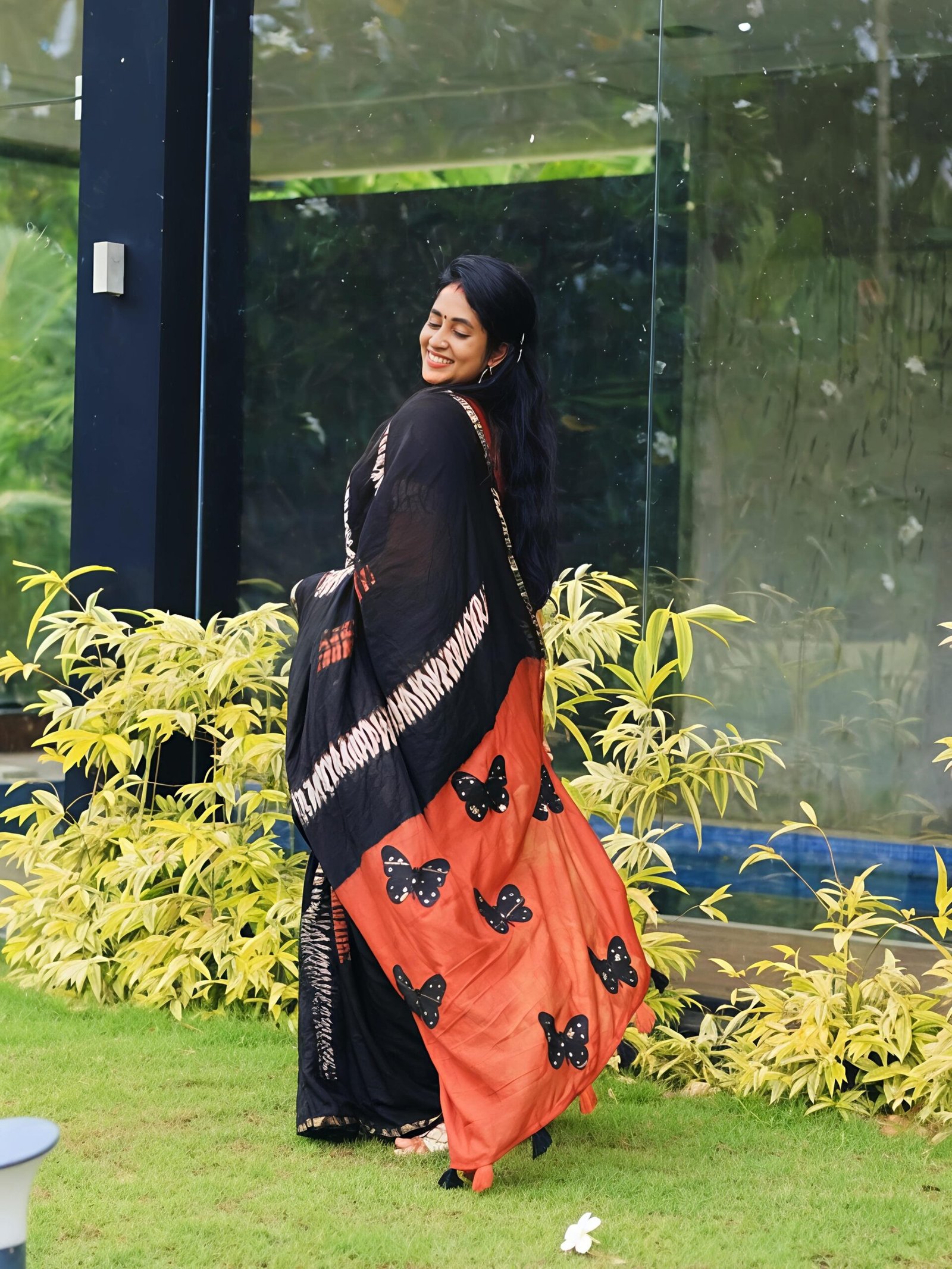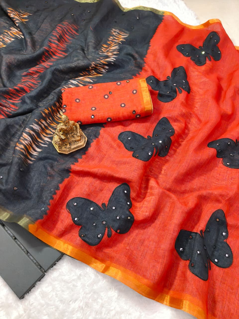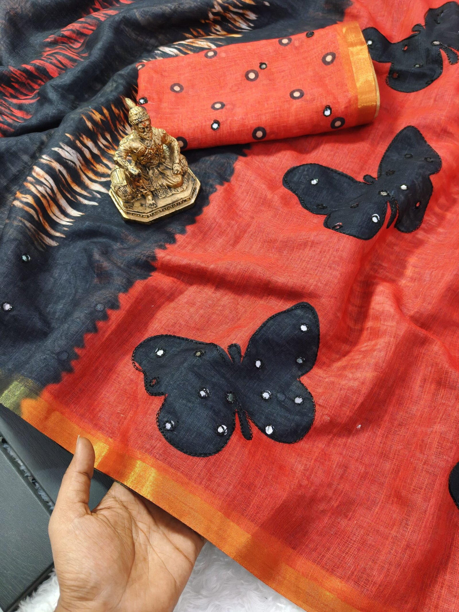 butterfly embroidered pallu with mirror work blouse piece and pallu