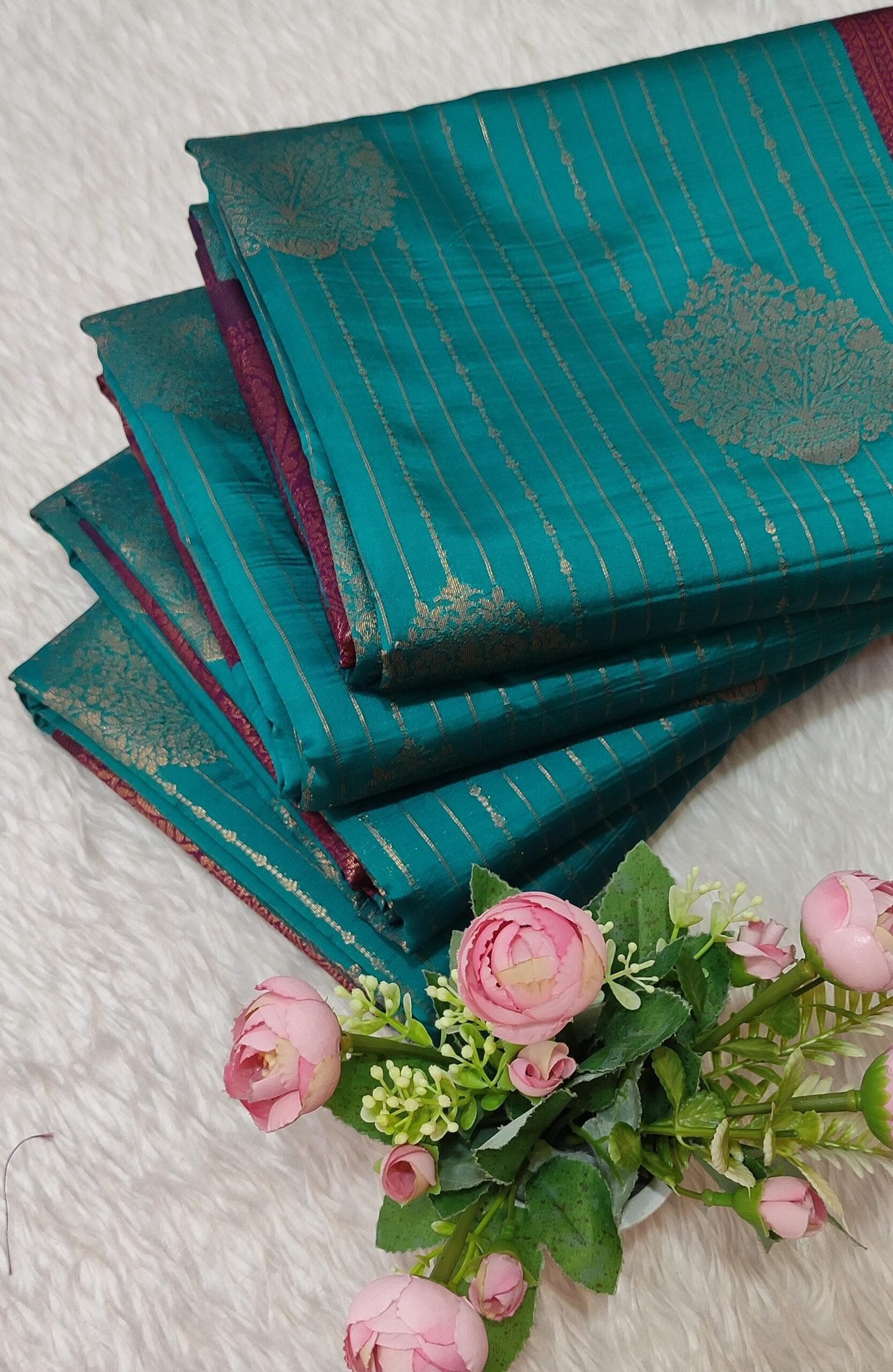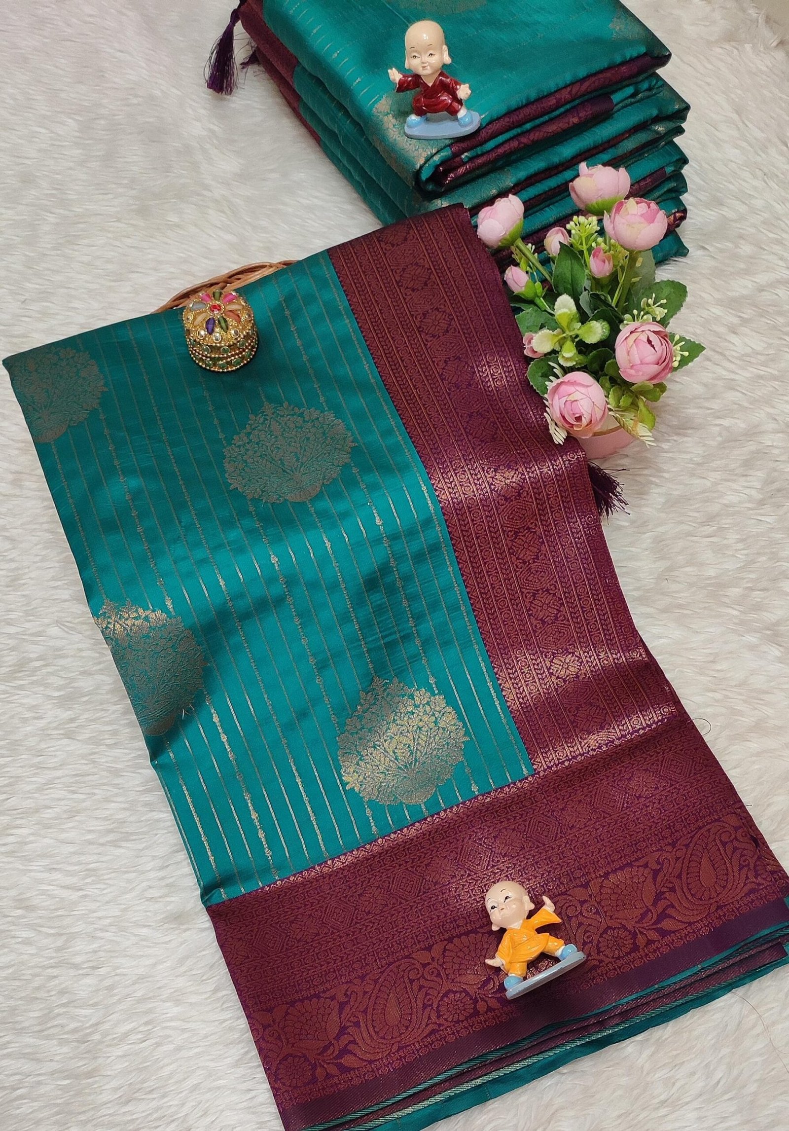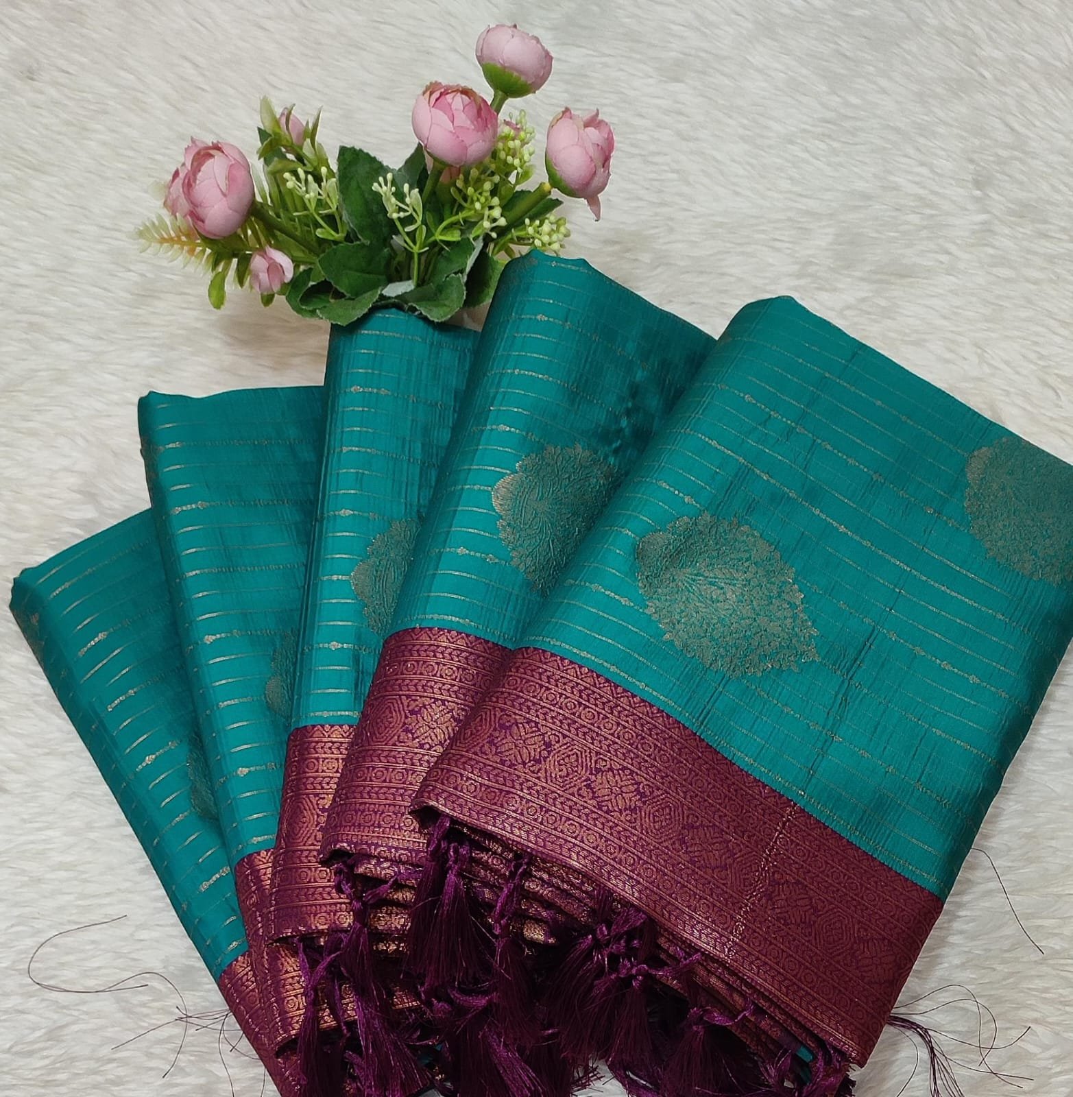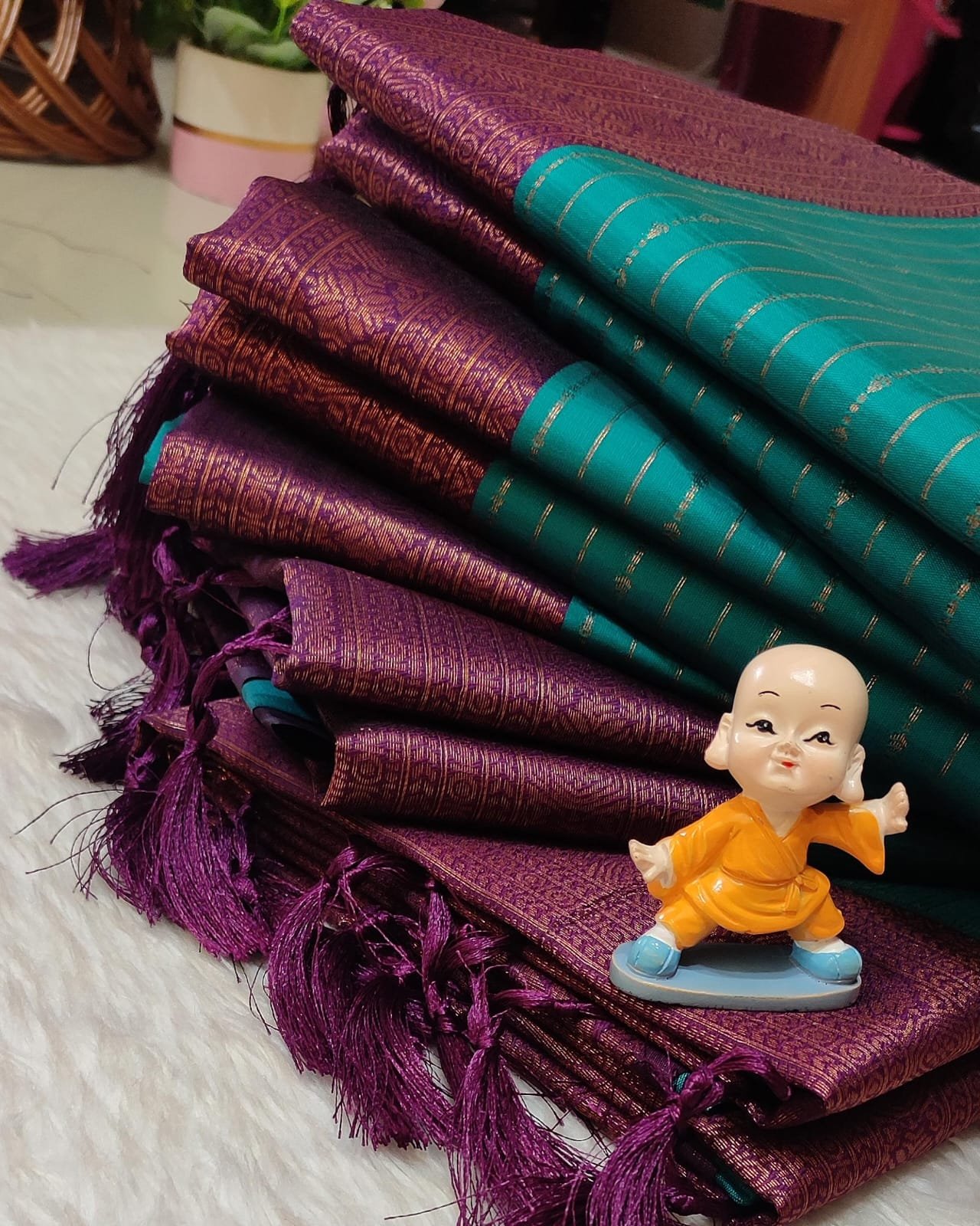 Exclusive in elegant collection of semi kanchi soft silk with turning contrast border n contrst pallu