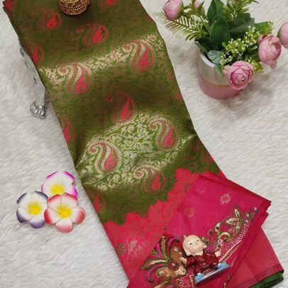 Exclusive in elegant collection of semi kanchi soft silk with turning contrast border n contrst pallu